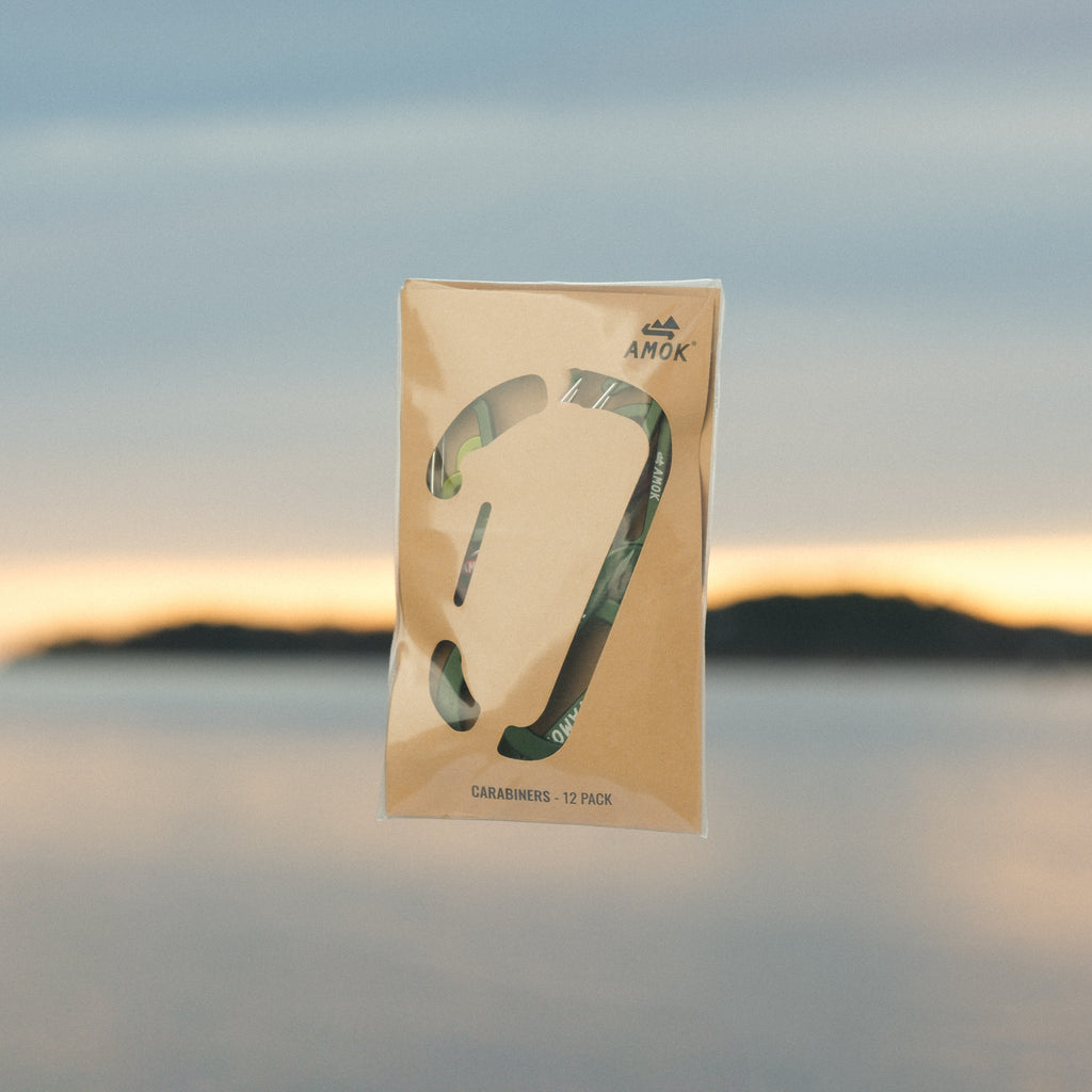 12-pack of practical carabiner clips, perfect for hammock trips - hang a lantern or headlamp as a reading light, or clip on an extra pack to keep essentials within reach. And on the hike to camp, secure that water bottle that's always slipping out of your backpack's side pocket.