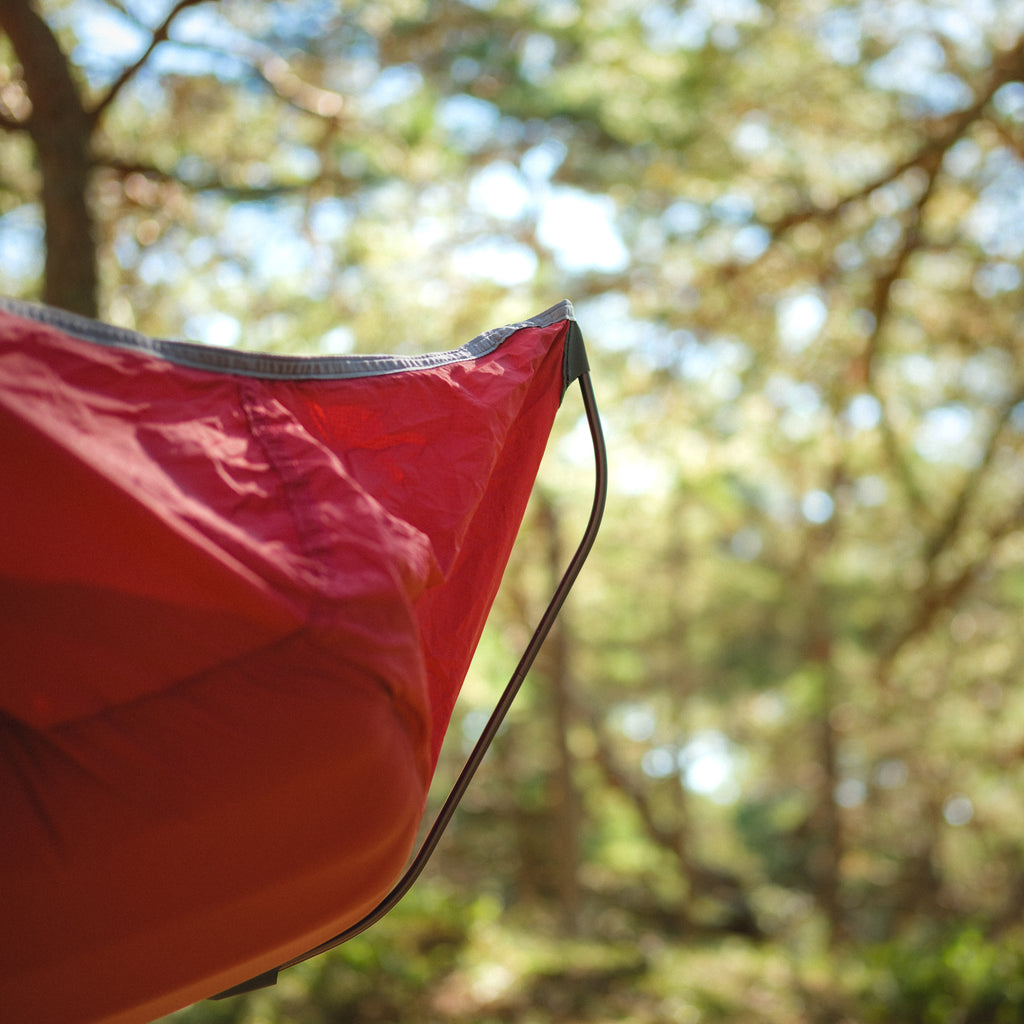 • Our lightweight aluminium rods are super easy to install and bent to perfectly follow the profile of the hammock, making sure they stay in place.