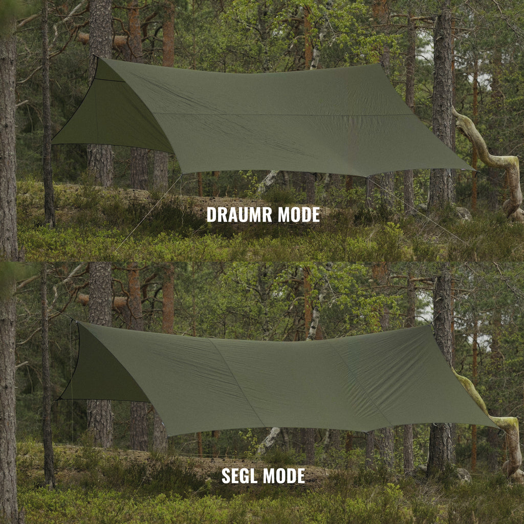 • The tarp is perfect for Draumr Double, it will also give you plenty of room around the hammock used in combination with Draumr 5.0, Draumr UL or Segl XL.